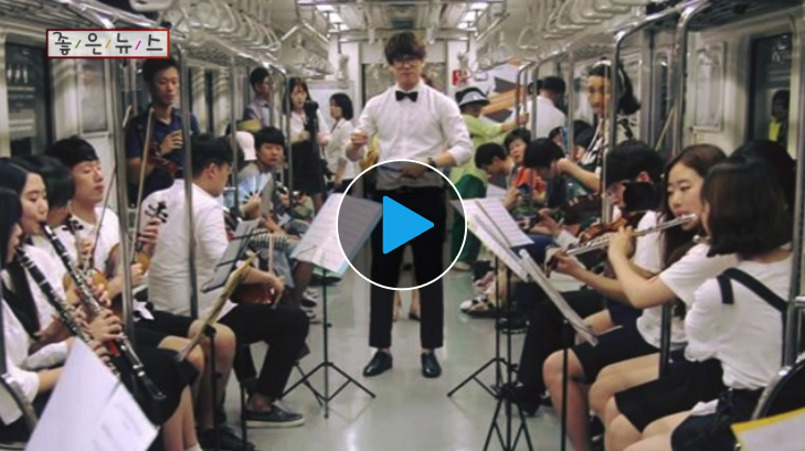 중고생과 대학생 오케스트라 단원으로 구성된 '메리 오케스트'라는 지하철 안에서 월 1∼2회 클래식을 연주하며, 찾아가는 음악 봉사를 실천하고 있습니다.