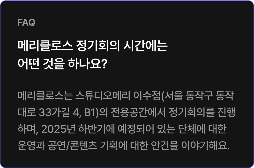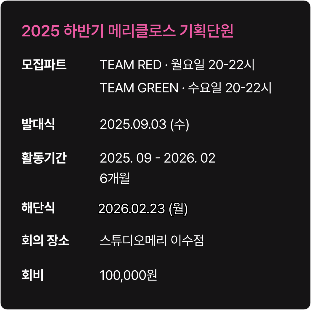 * 메리클로스 회비는 100,000원입니다.