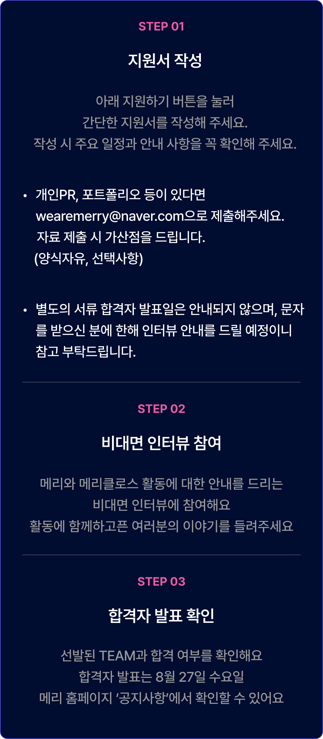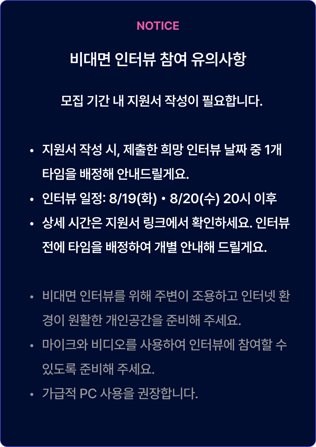 * 회비는 기수제로 운영되므로, 입단 이후 기수 중 일부 일정에 불참하더라도 해당 기간의 회비는 환불되지 않습니다. (예: 기수 전체 기간 중 1개월 불참 시, 1개월 분 회비는 환불되지 않음)