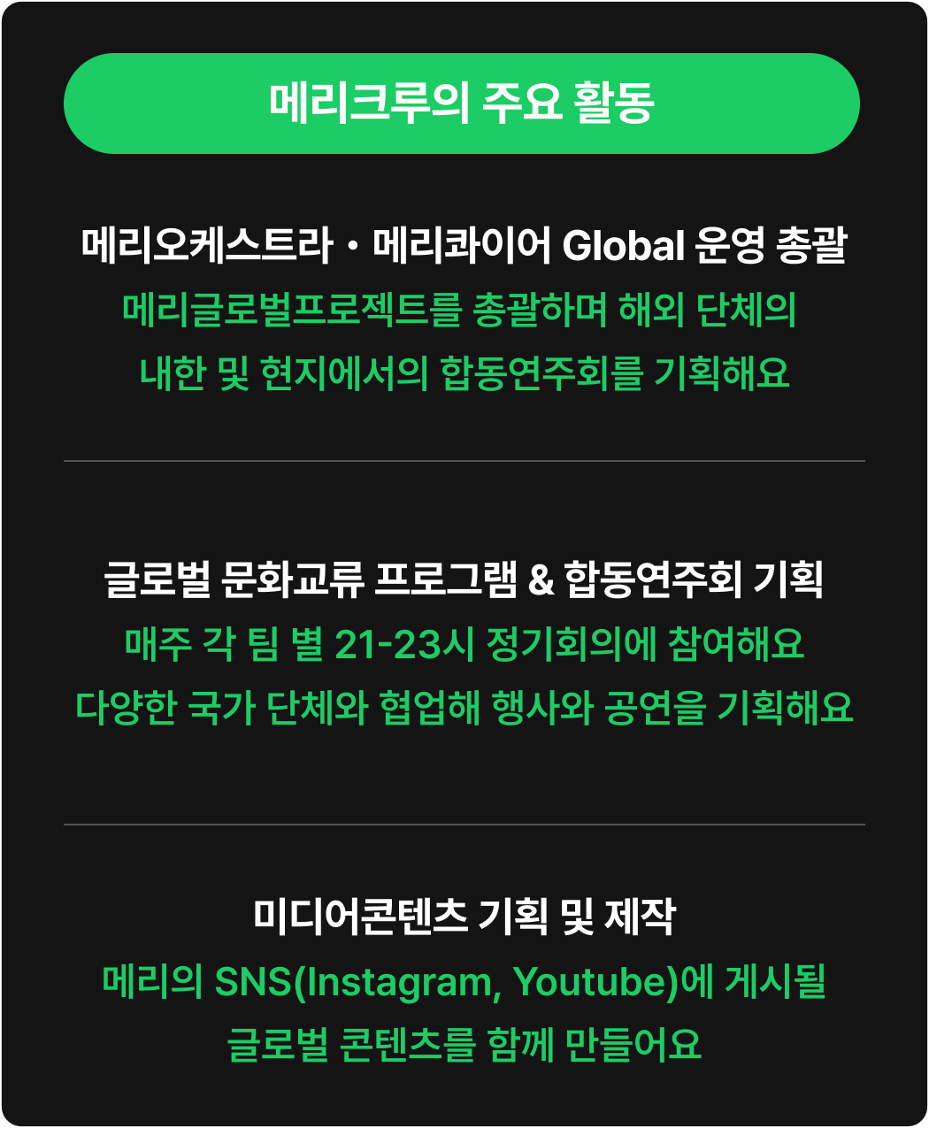 * 메리크루 회비는 100,000원입니다.