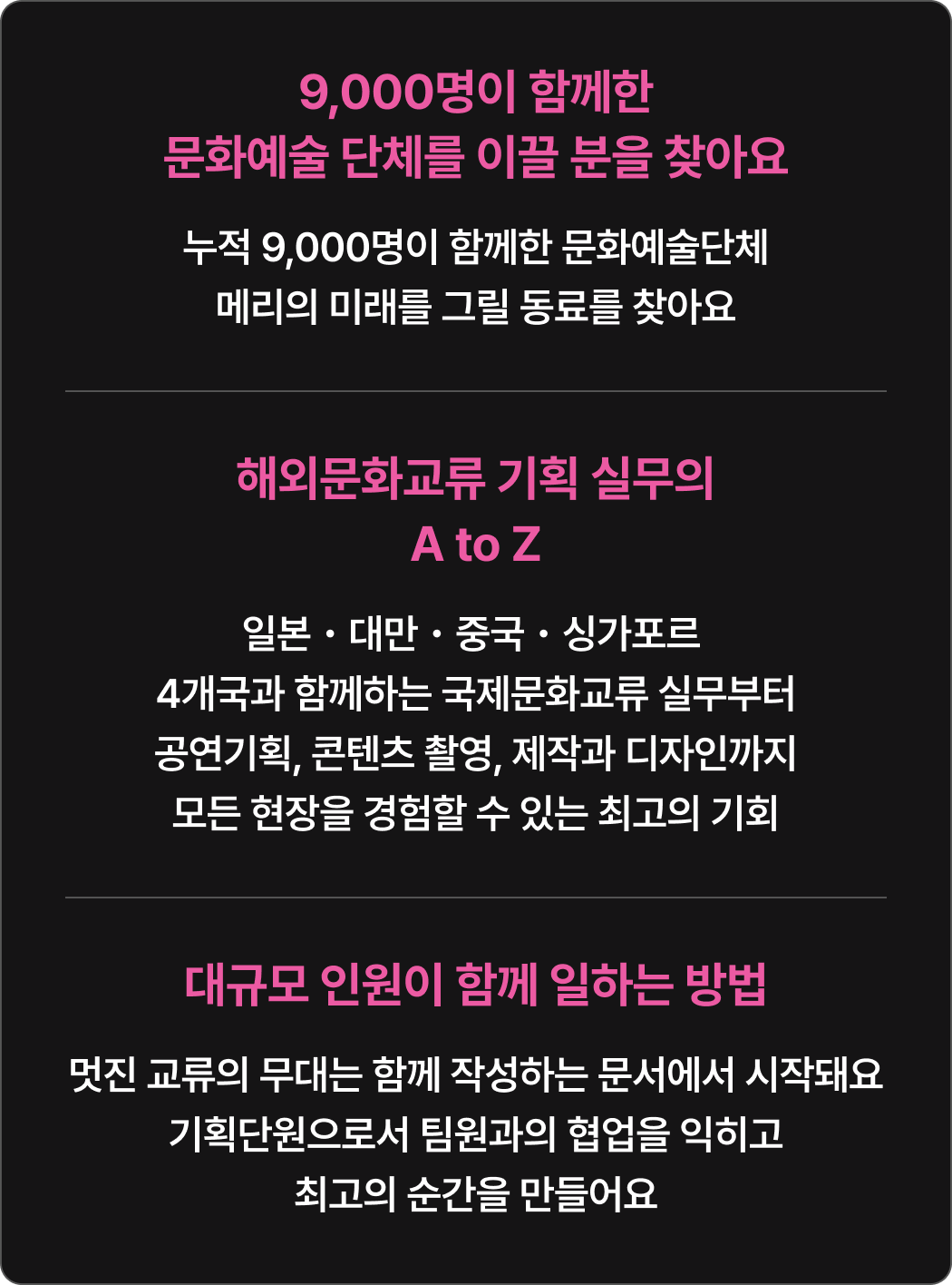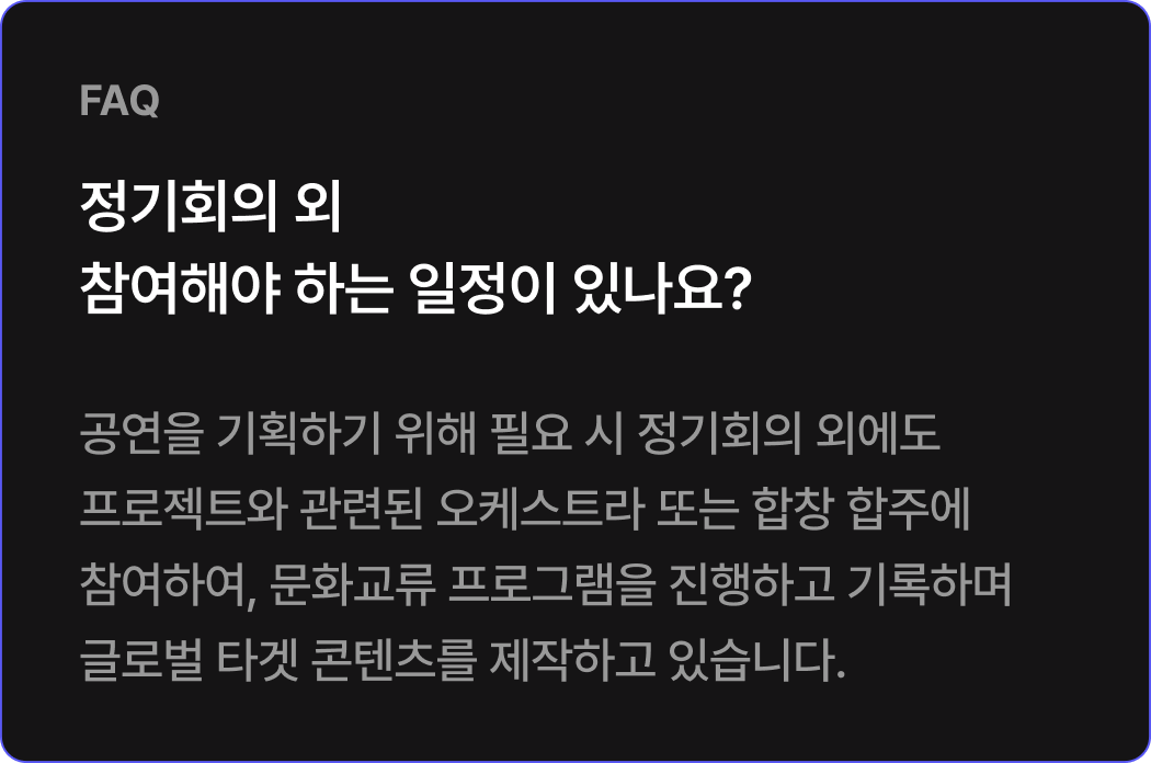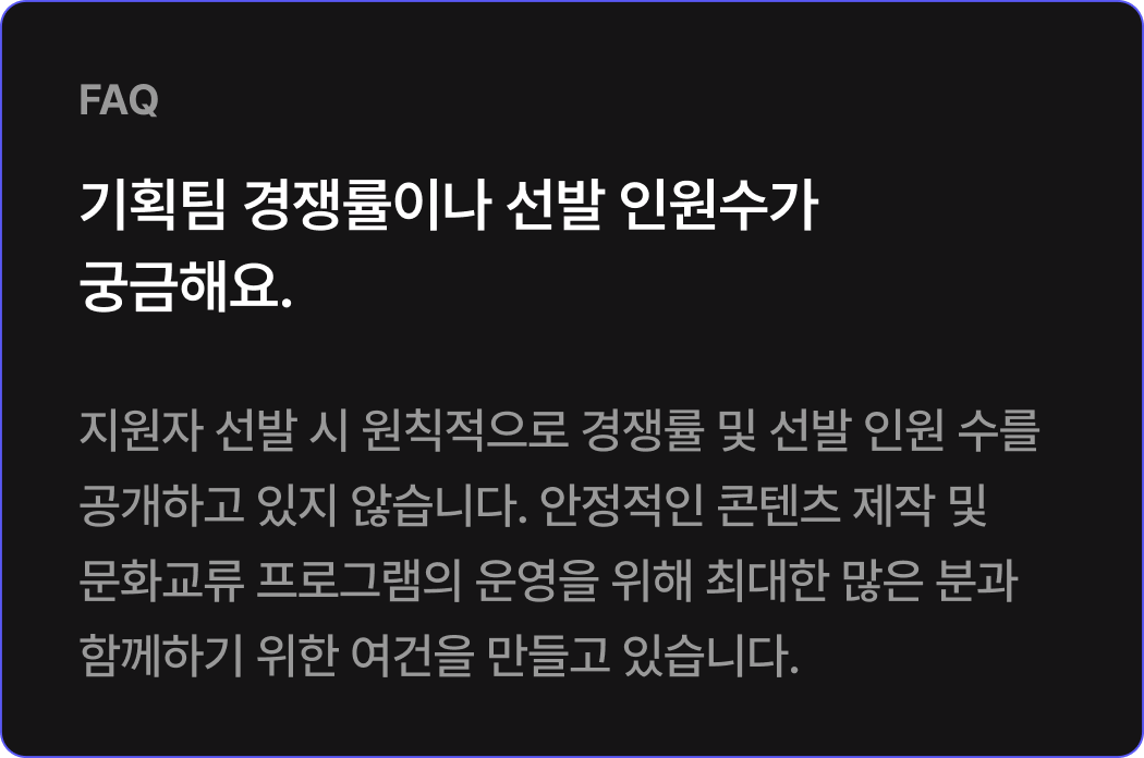 * 회비는 기수제로 운영되므로, 입단 이후 기수 중 일부 일정에 불참하더라도 해당 기간의 회비는 환불되지 않습니다. (예: 기수 전체 기간 중 1개월 불참 시, 1개월 분 회비는 환불되지 않음)
