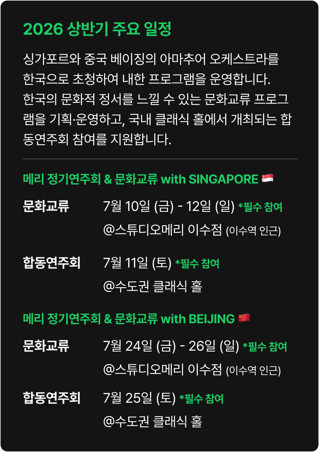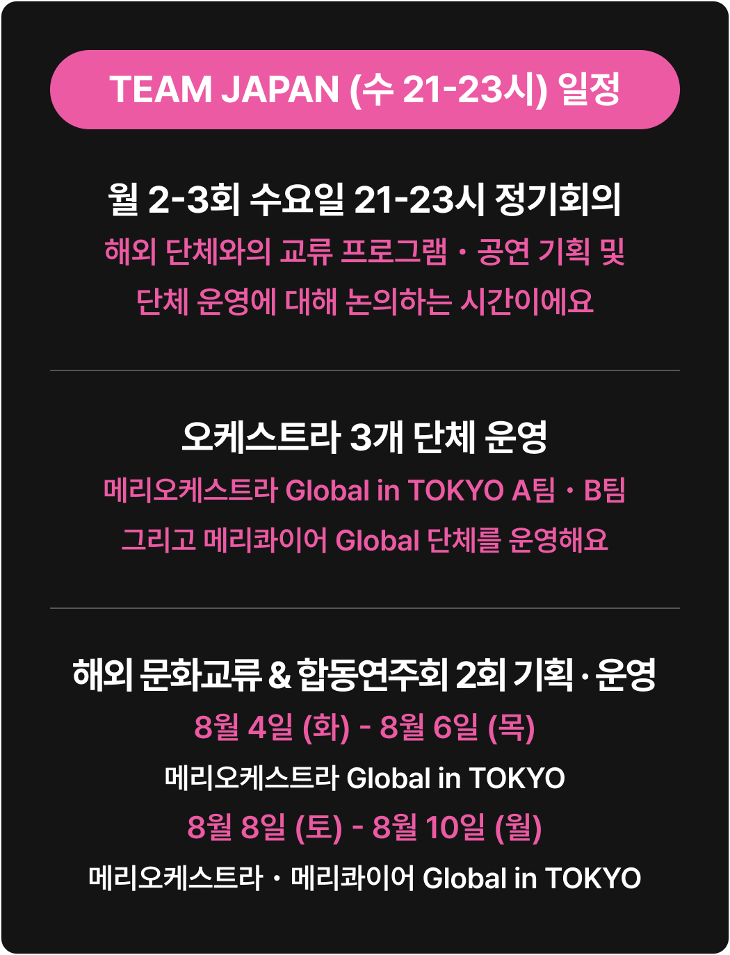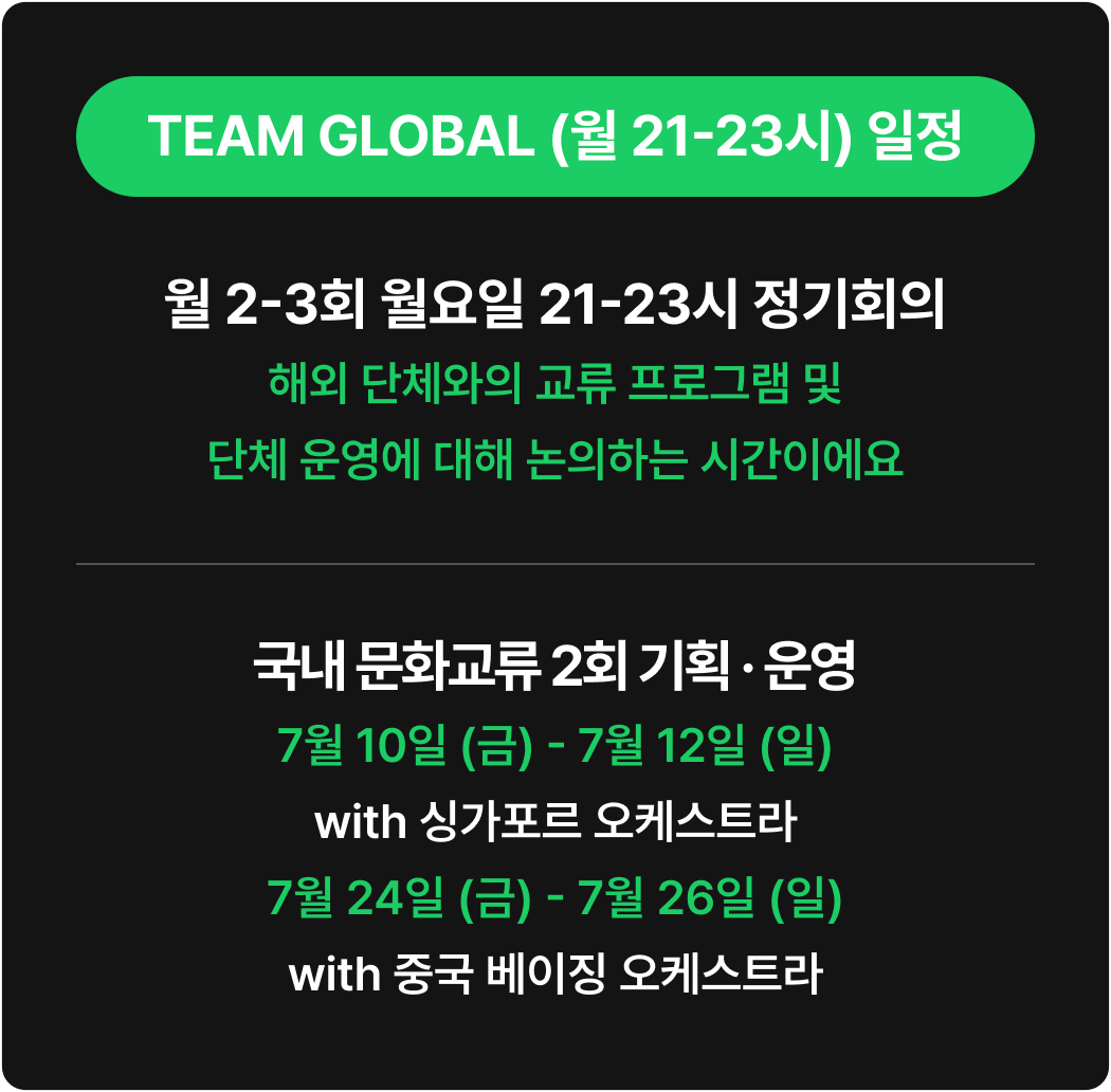 * 회비는 정기회의 및 협업툴 사용 등을 위해 사용되며, Photoshop 등 유료 프로그램에 대한 라이센스 비용과 해외 체류를 위한 경비는 포함되어 있지 않습니다.