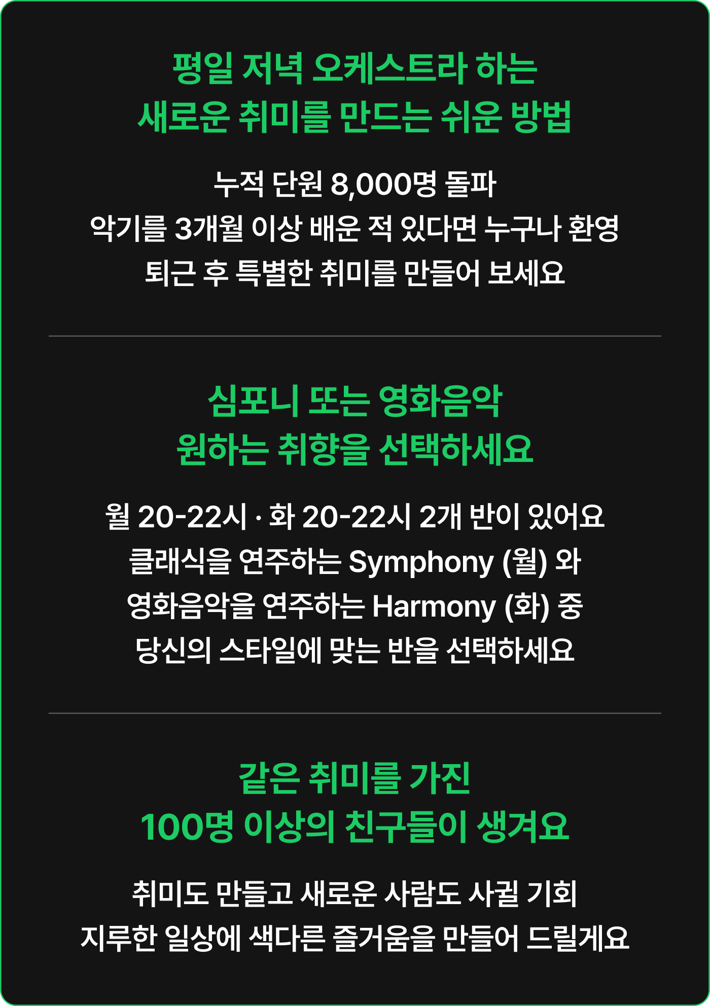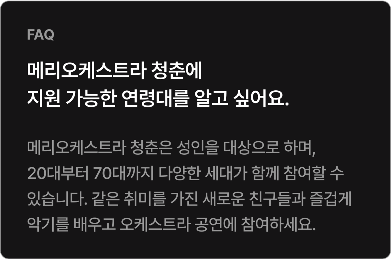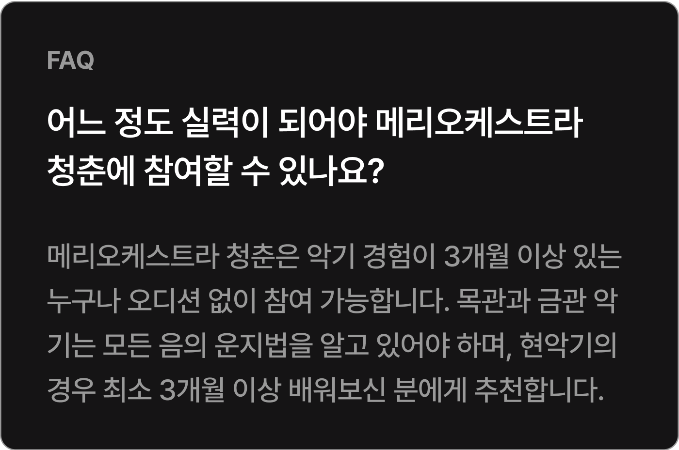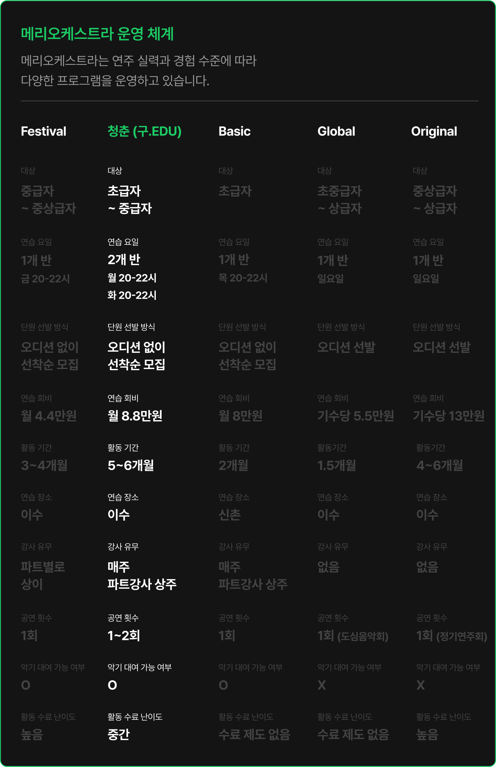 * 정기연습과 최종 리허설(총 20회)의 회비는 440,000원입니다.