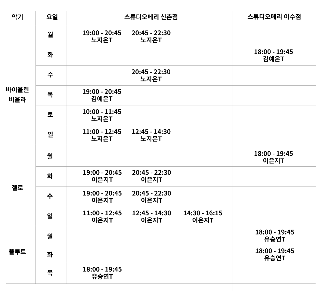 * 회비는 프로그램 운영을 위해 사용되며, 스튜디오메리 내 비치된 악기 대여를 하는 경우 별도의 악기 대여료 (월 17,500원)이 발생합니다.