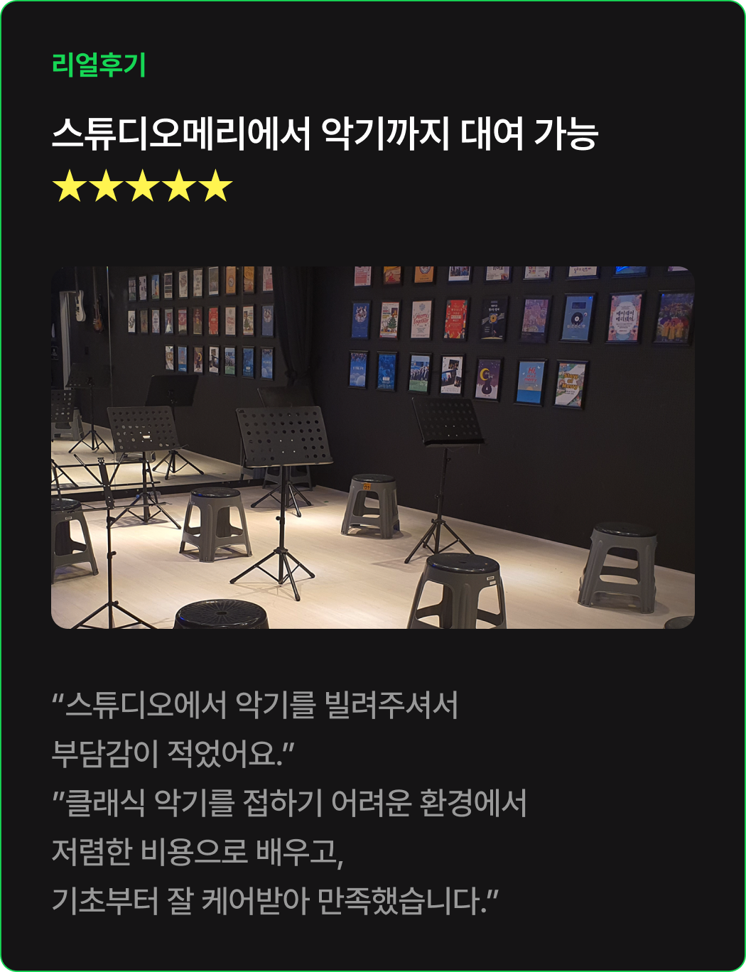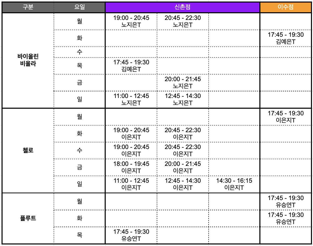 * 회비는 프로그램 운영을 위해 사용되며, 스튜디오메리 내 비치된 악기 대여를 하는 경우 별도의 악기 대여료 (월 17,500원)이 발생합니다.